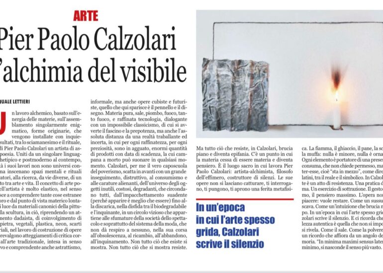 di Pasquale Lettieri Un lavoro alchemico, basato sull’energia delle materie, sull’assemblaggio enigmatico di forme originarie: l’arte di Pier Paolo Calzolari è pura poesia visiva,...